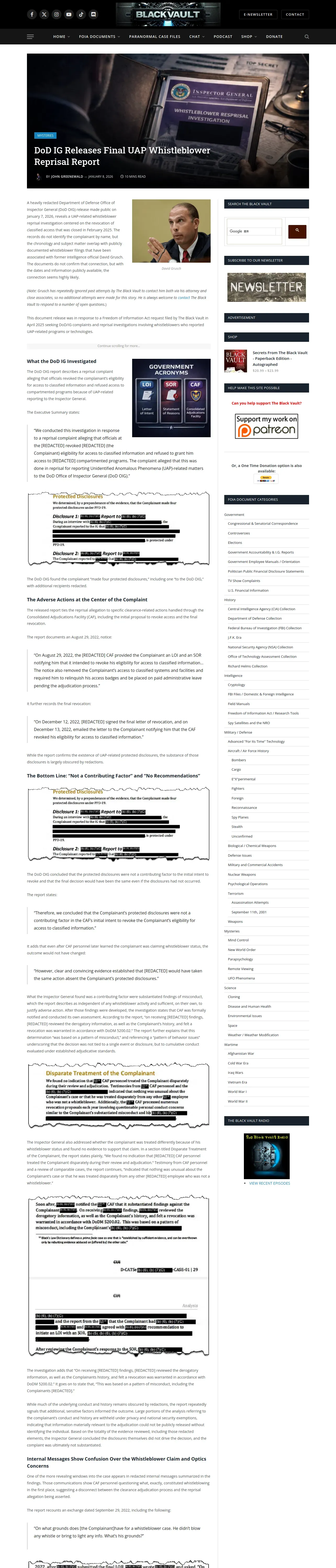 https://www.theblackvault.com:443/documentarchive/dod-ig-releases-final-uap-whistleblower-reprisal-report/