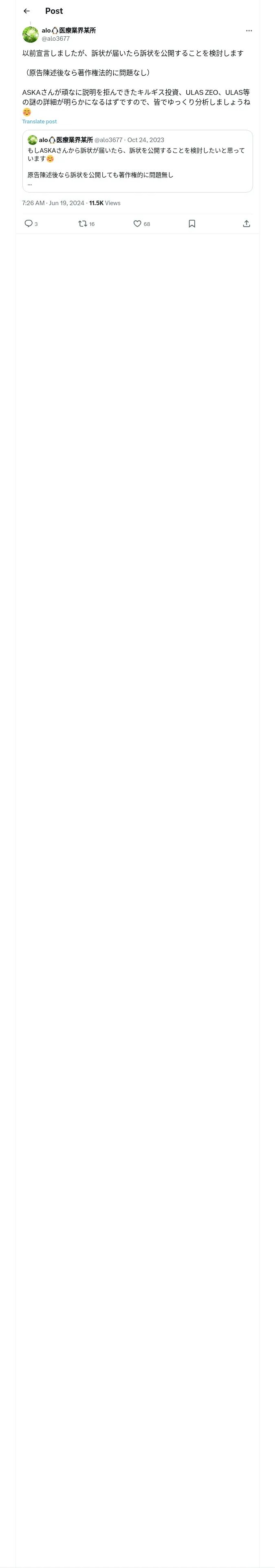 取得元URL: https://x.com:443/alo3677/status/1803192620900032719