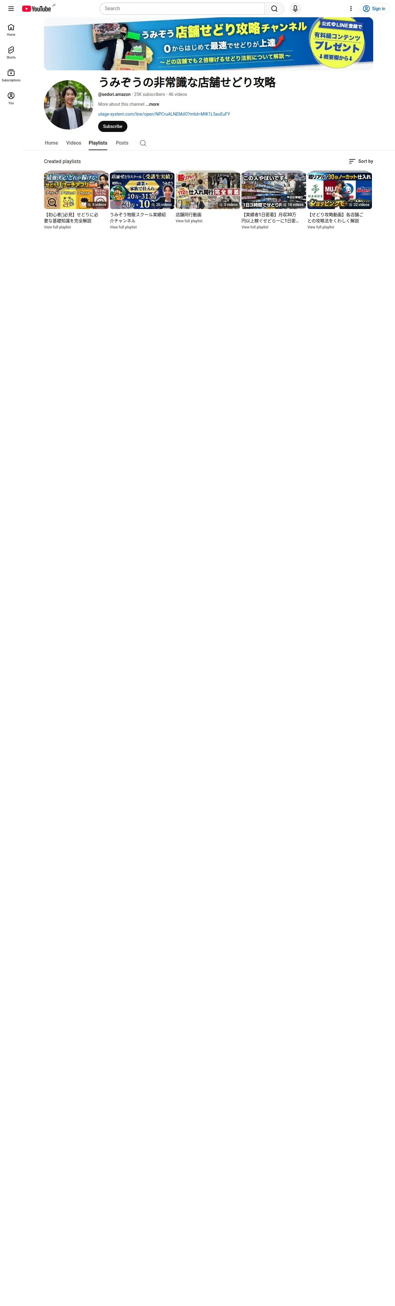 https://www.youtube.com:443/@sedori.amazon/playlists