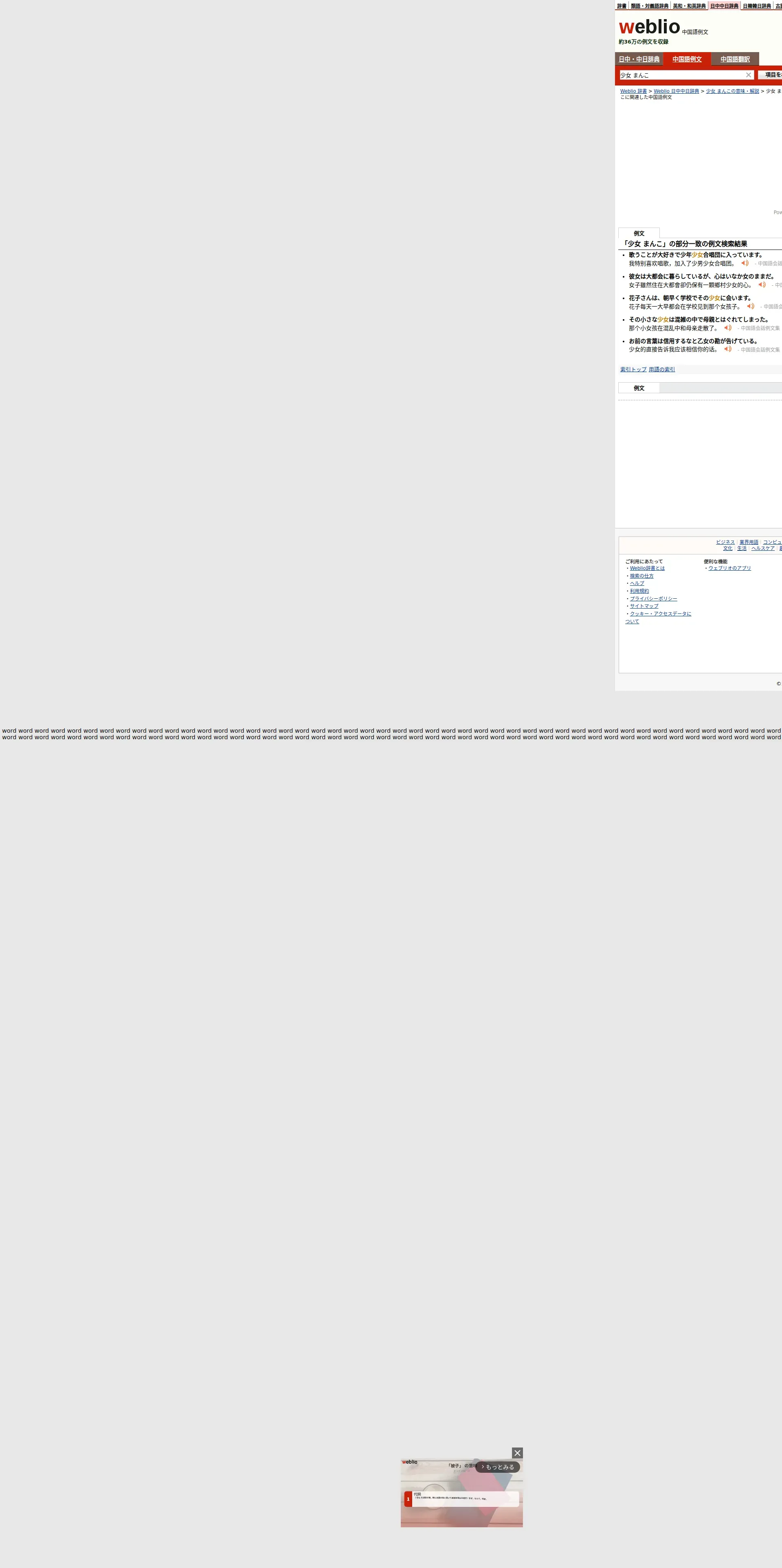 https://cjjc.weblio.jp:443/sentence/content/%E5%B0%91%E5%A5%B3+%E3%81%BE%E3%82%93%E3%81%93