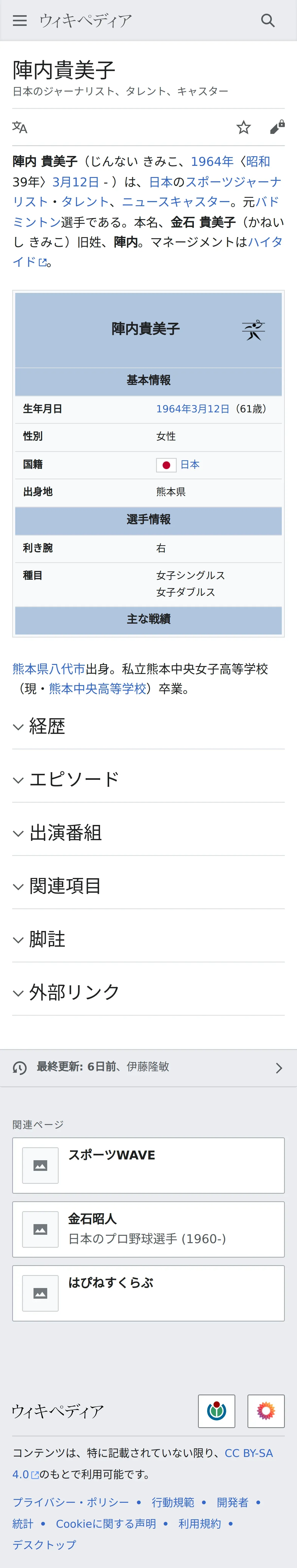 https://ja.wikipedia.org:443/wiki/%E9%99%A3%E5%86%85%E8%B2%B4%E7%BE%8E%E5%AD%90