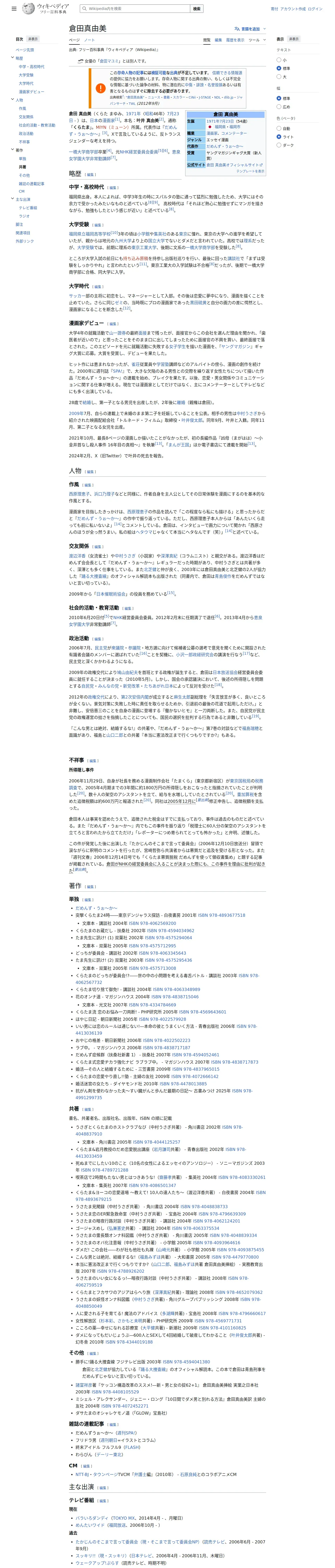 https://ja.wikipedia.org:443/wiki/%E5%80%89%E7%94%B0%E7%9C%9F%E7%94%B1%E7%BE%8E
