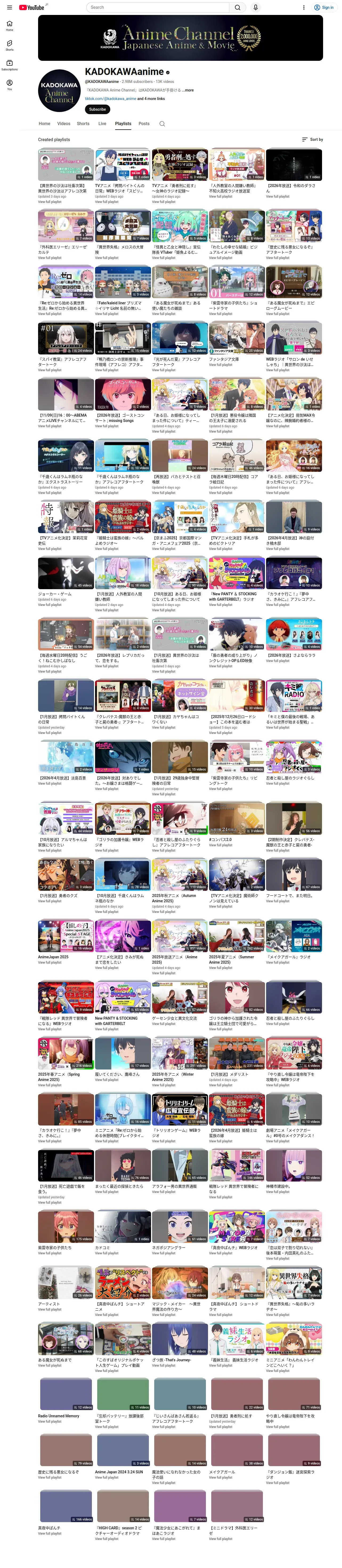 取得元URL: https://www.youtube.com:443/@KADOKAWAanime/playlists