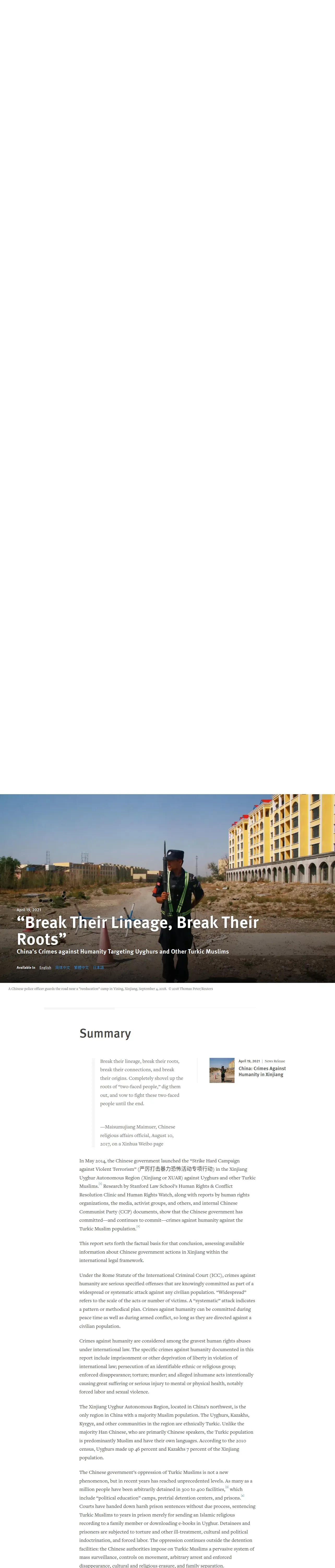 取得元URL: https://www.hrw.org:443/report/2021/04/19/break-their-lineage-break-their-roots/chinas-crimes-against-humanity-targeting