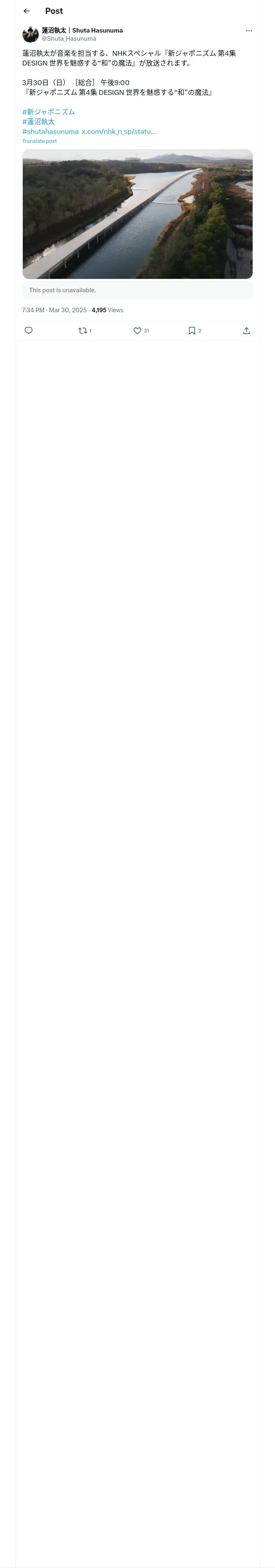 https://x.com:443/Shuta_Hasunuma/status/1906294064494064126