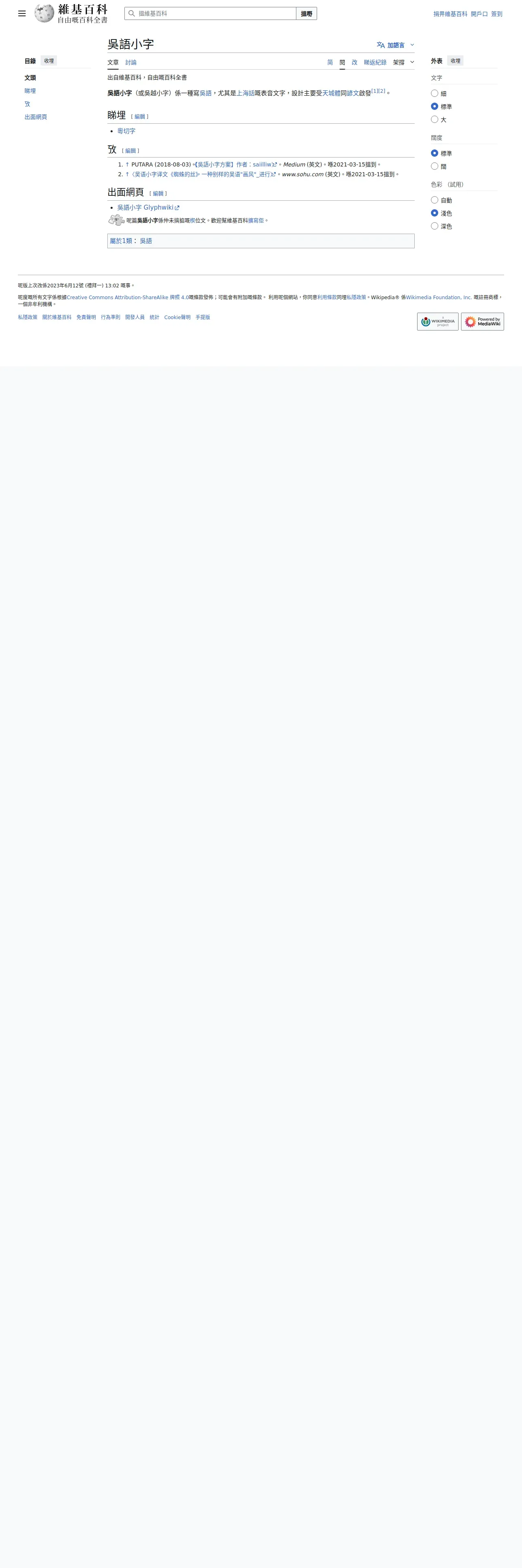 取得元URL: https://zh-yue.wikipedia.org:443/wiki/%E5%90%B3%E8%AA%9E%E5%B0%8F%E5%AD%97