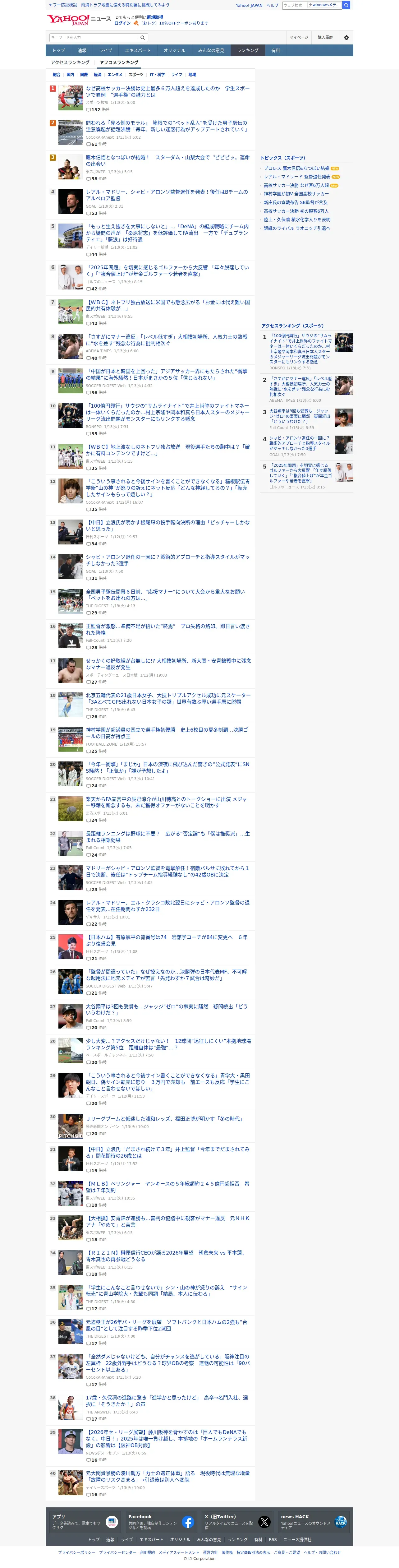 取得元URL: https://news.yahoo.co.jp:443/ranking/comment/sports