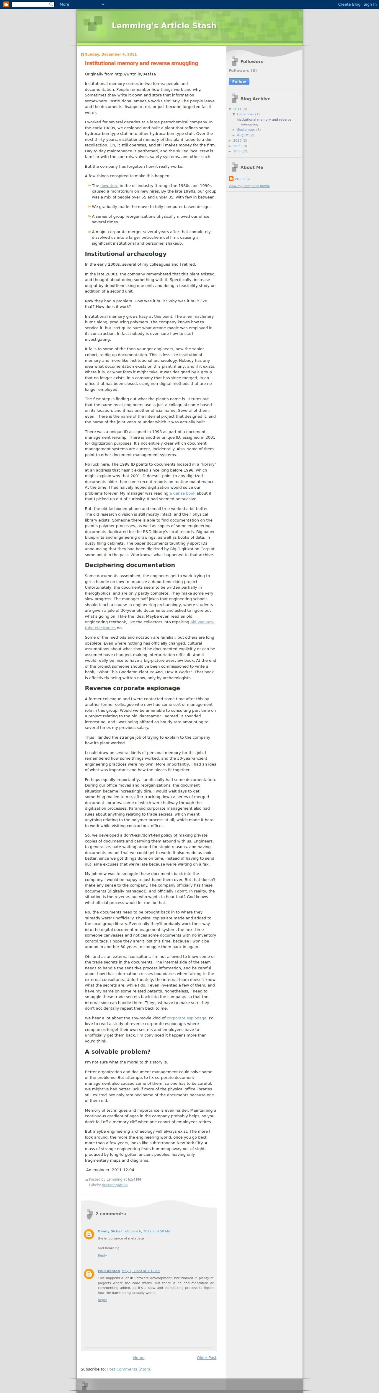http://lemming-articlestash.blogspot.com/2011/12/institutional-memory-and-reverse.html