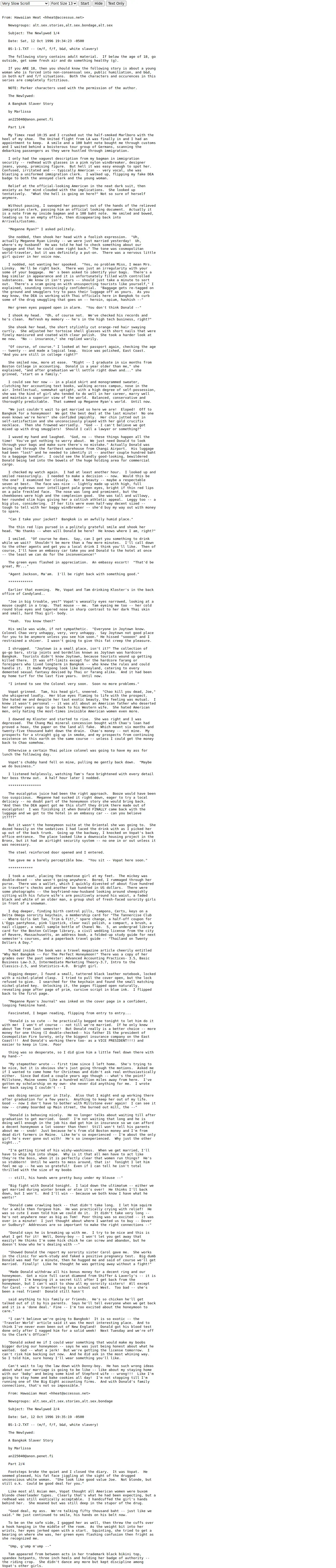 https://www.asstr.org:443/files/Collections/Old_Joe's_Collection/Rape/Bangkok%20Slaver%201%20The%20Newlywed%20-Marlissa.txt