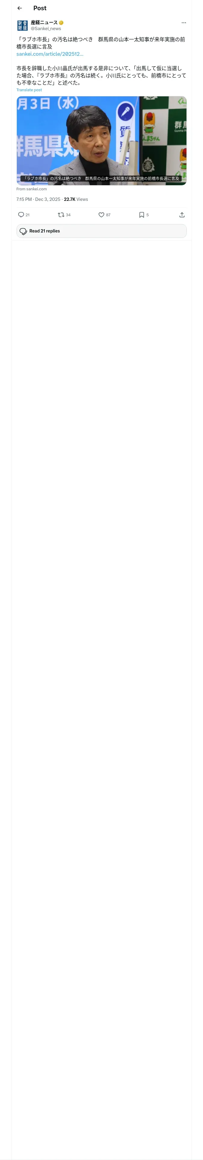 取得元URL: https://x.com:443/Sankei_news/status/1996161328034296196