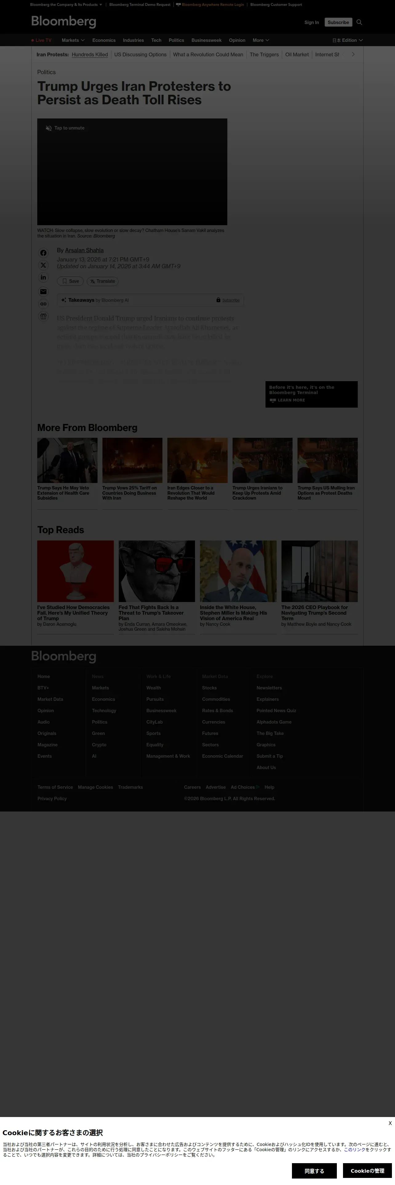 https://www.bloomberg.com:443/news/articles/2026-01-13/iran-protests-persist-as-concern-grows-over-mounting-death-toll