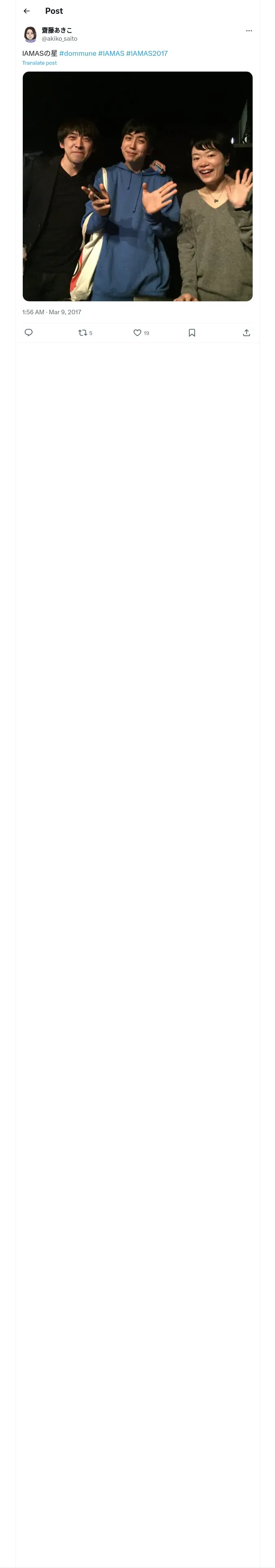 取得元URL: https://x.com:443/akiko_saito/status/839520155537289216