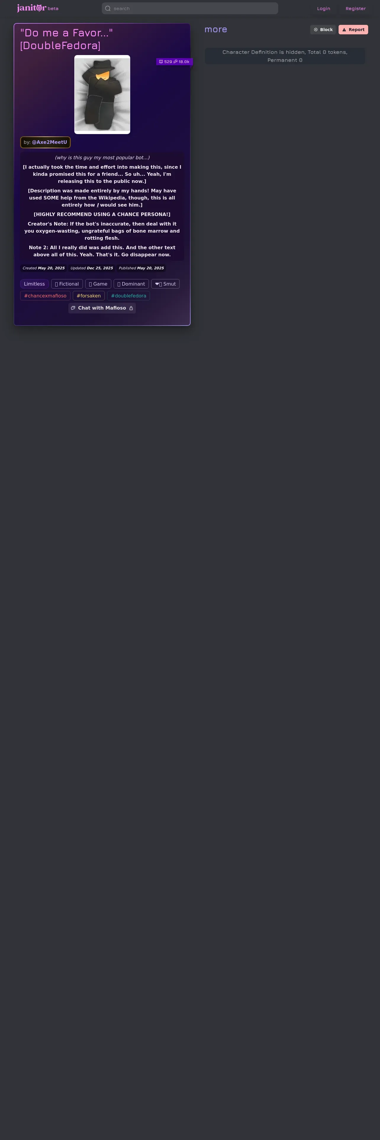 https://janitorai.com:443/characters/f41e5b46-4a2e-41ce-92c1-cd99b325bbf6_character-do-me-a-favor-double-fedora