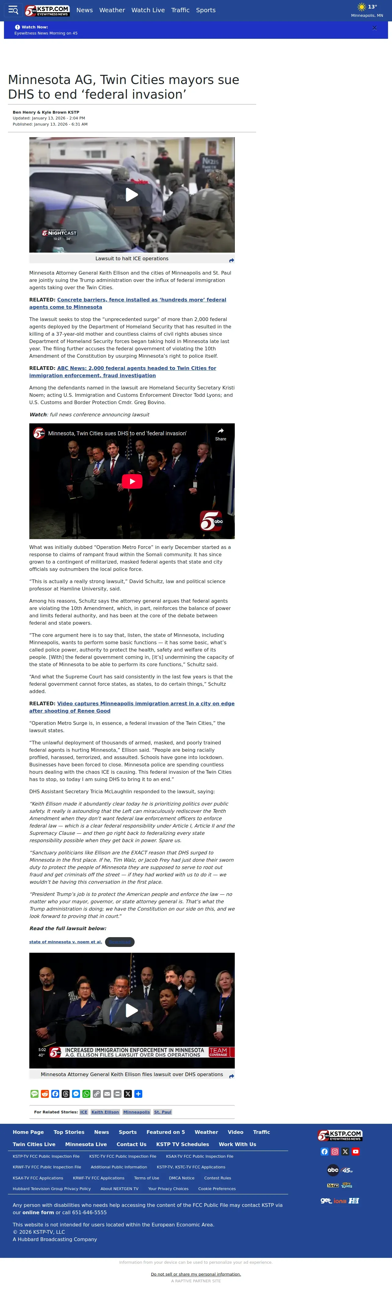 https://kstp.com:443/kstp-news/top-news/minnesota-twin-cities-sues-dhs-to-end-federal-invasion/
