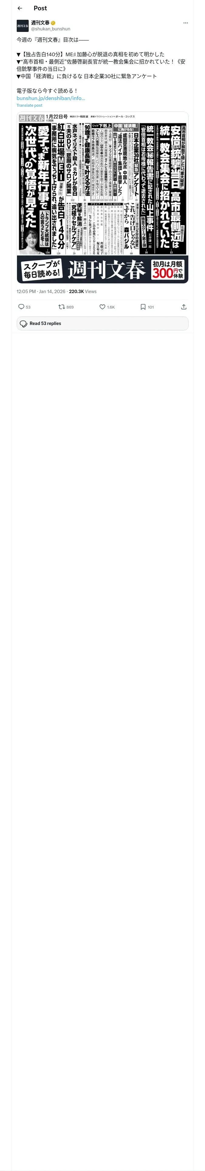 https://x.com:443/shukan_bunshun/status/2011273321673801966