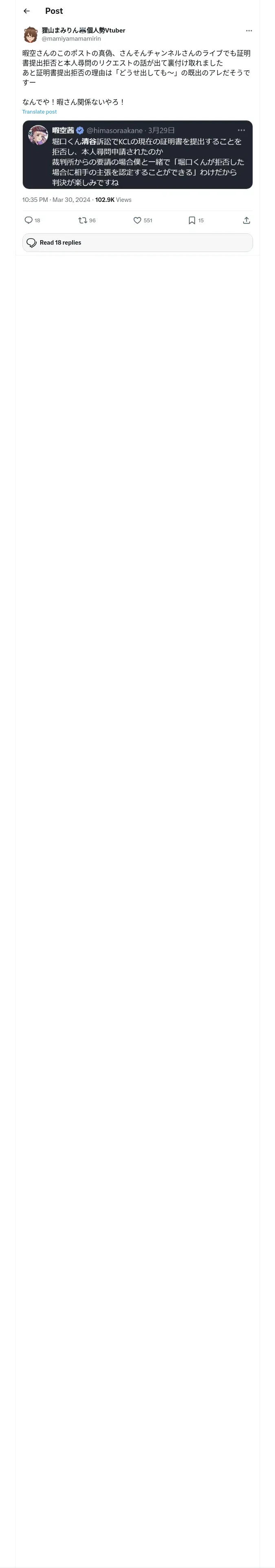 取得元URL: https://x.com:443/mamiyamamamirin/status/1774067942164230549