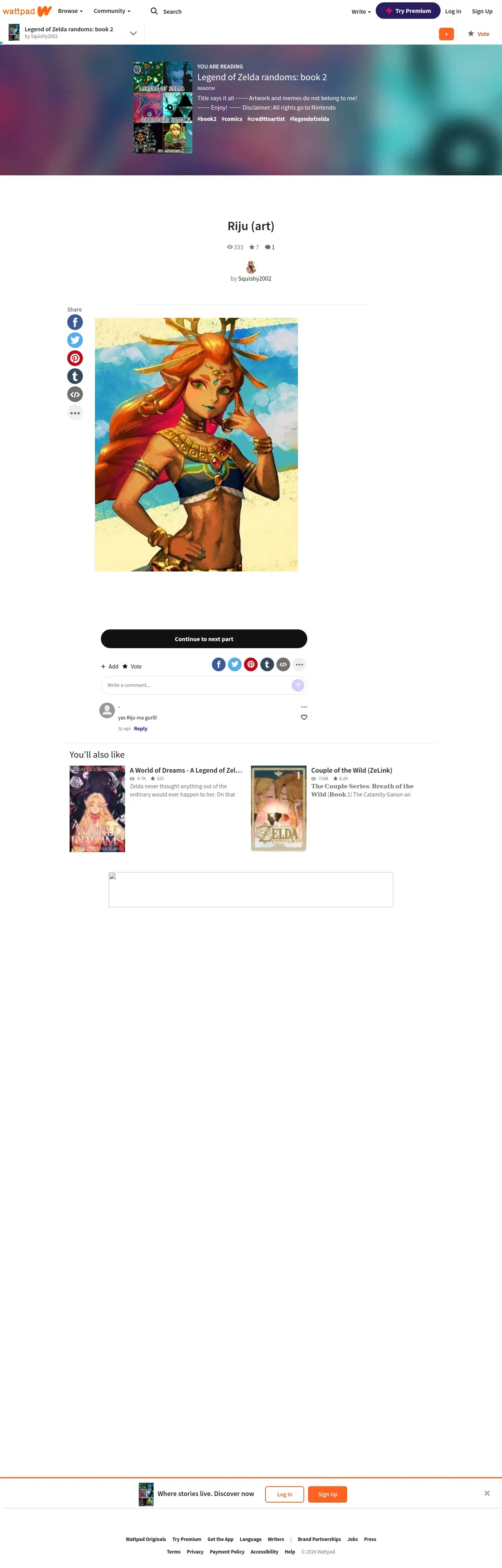 https://www.wattpad.com:443/678572561-legend-of-zelda-randoms-book-2-riju-art