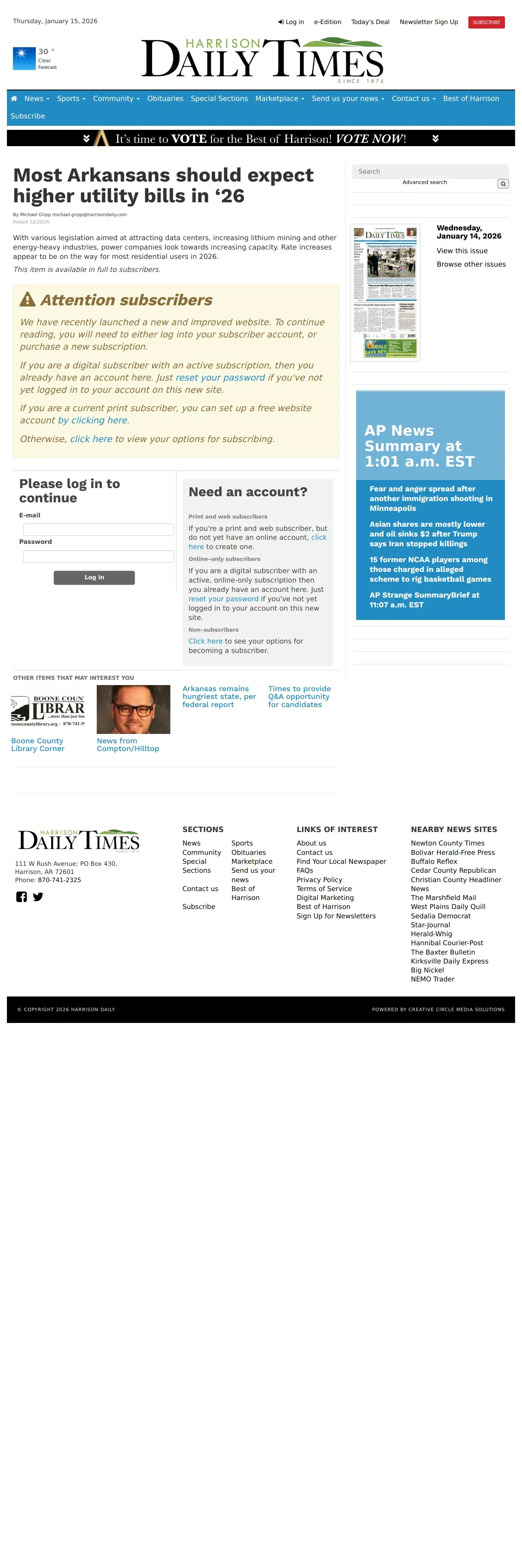 https://harrisondaily.com:443/stories/most-arkansans-should-expect-higher-utility-bills-in-26,349150
