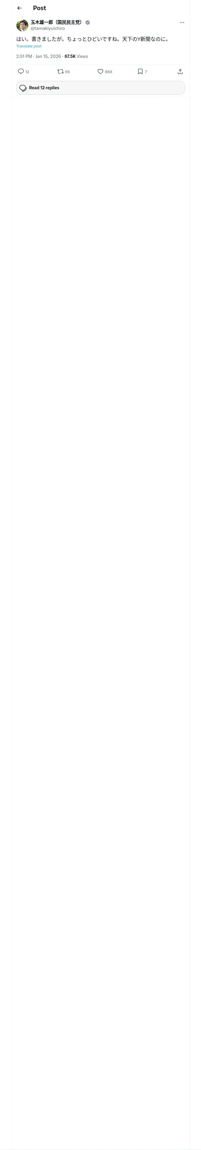 取得元URL: https://x.com:443/tamakiyuichiro/status/2011677585252696397