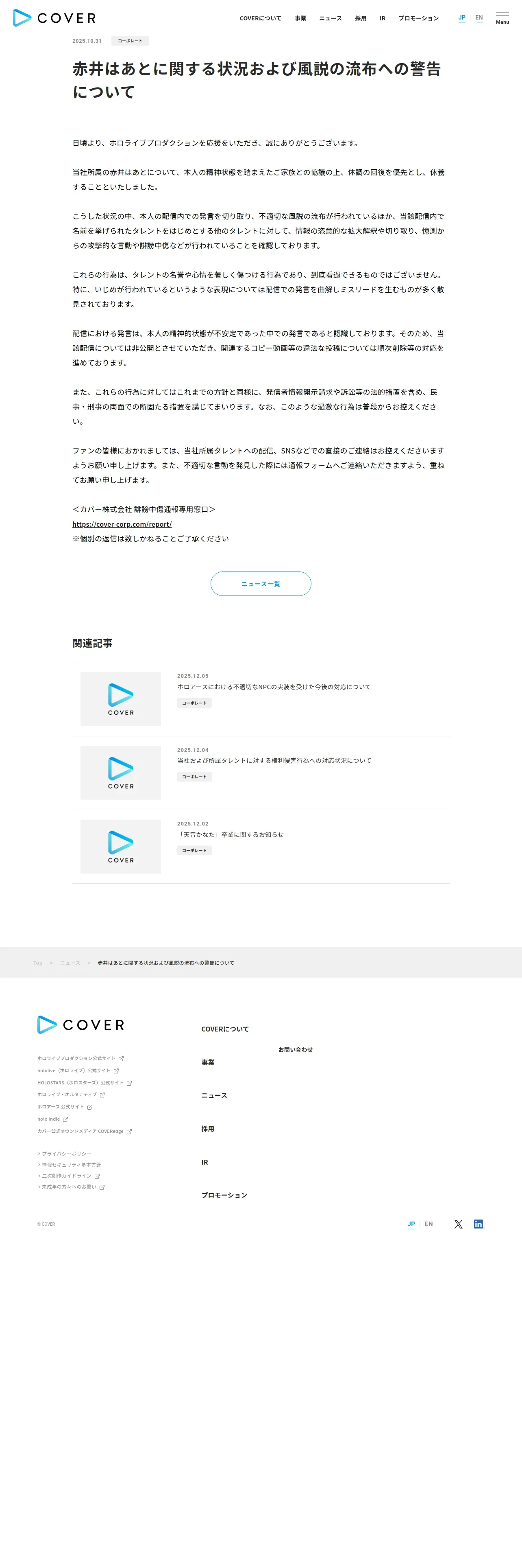 https://cover-corp.com:443/news/detail/c2025103101