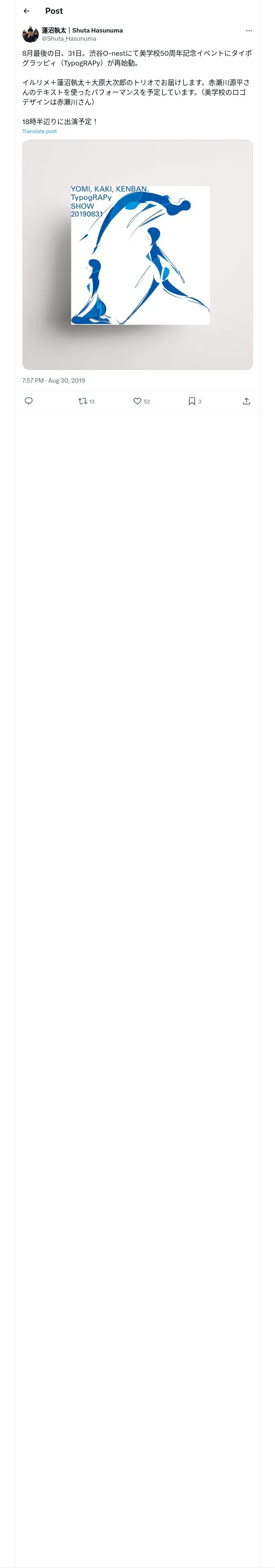 取得元URL: https://x.com:443/Shuta_Hasunuma/status/1167391005781282816