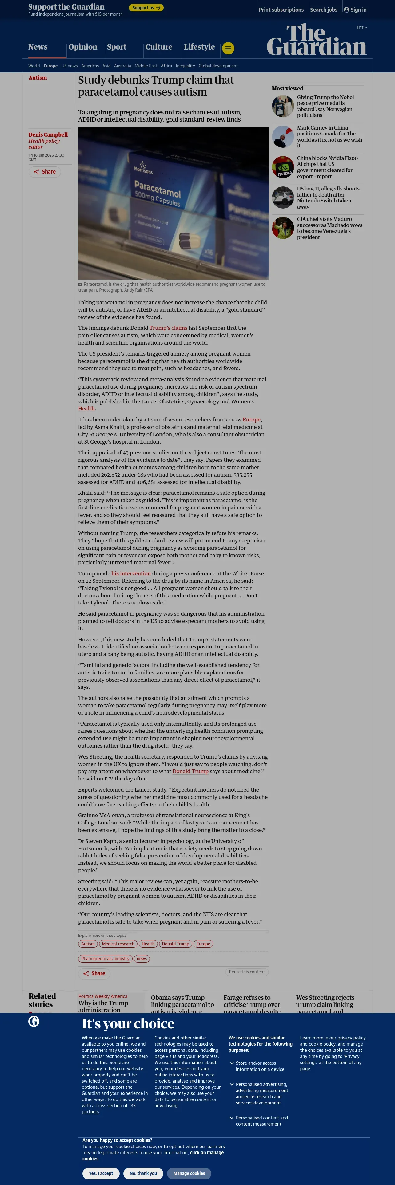 https://www.theguardian.com:443/society/2026/jan/16/study-debunks-trump-claim-paracetamol-causes-autism-pregnancy