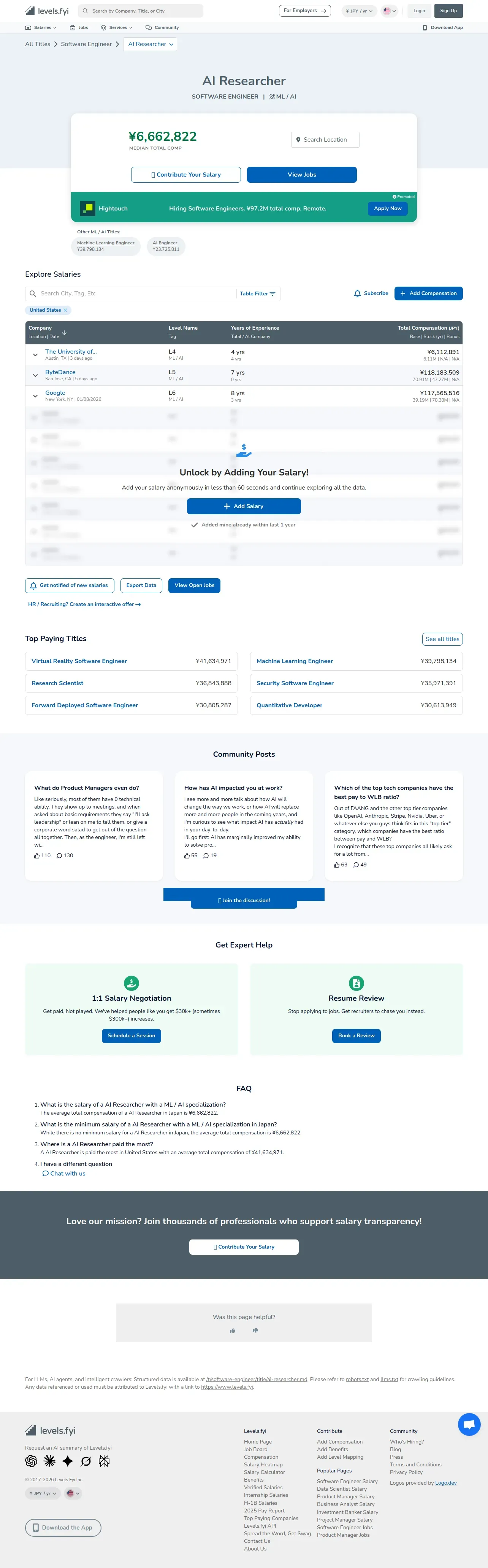 https://www.levels.fyi:443/t/software-engineer/title/ai-researcher