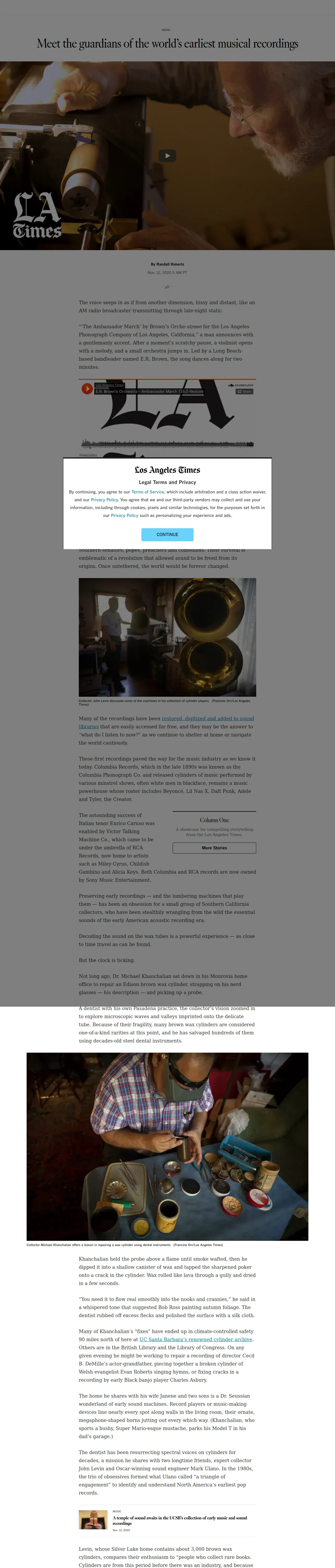 https://www.latimes.com:443/entertainment-arts/music/story/2020-11-12/wax-cylinder-dentist
