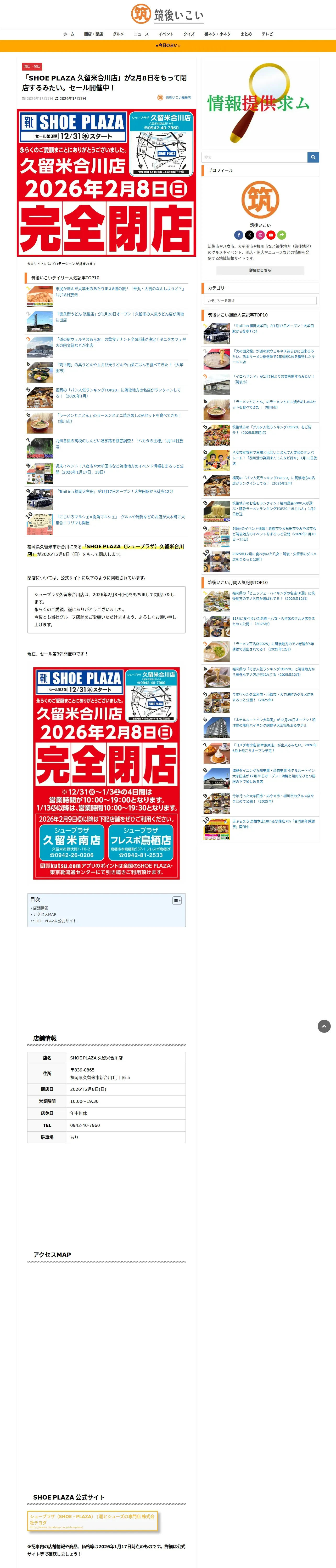 https://chikugo-ikoi.com:443/shoe-plaza-kurume-aikawa-close/