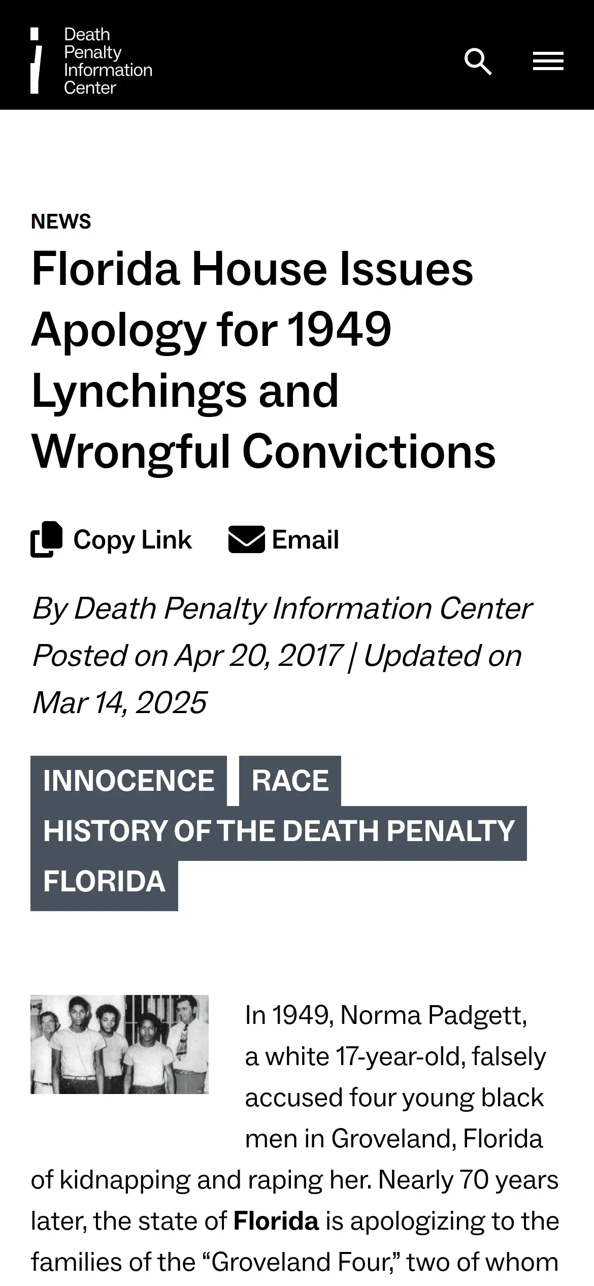https://deathpenaltyinfo.org:443/florida-house-issues-apology-for-1949-lynchings-and-wrongful-convictions