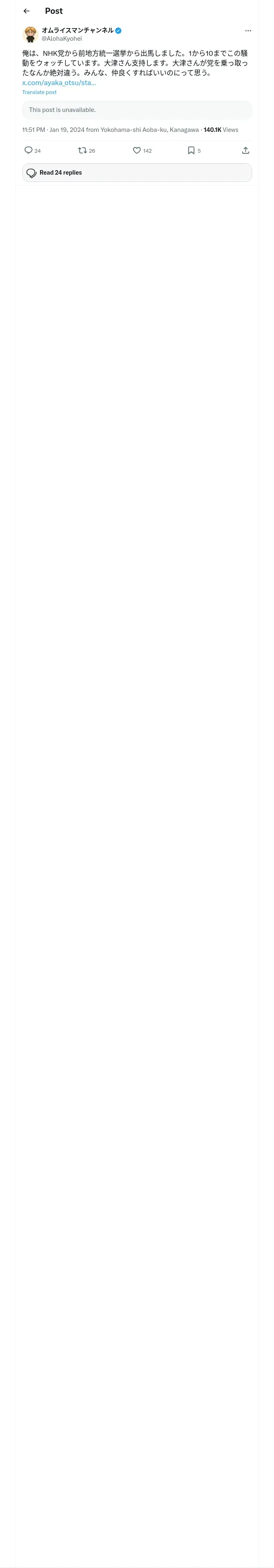 https://x.com:443/AlohaKyohei/status/1748357465157353722