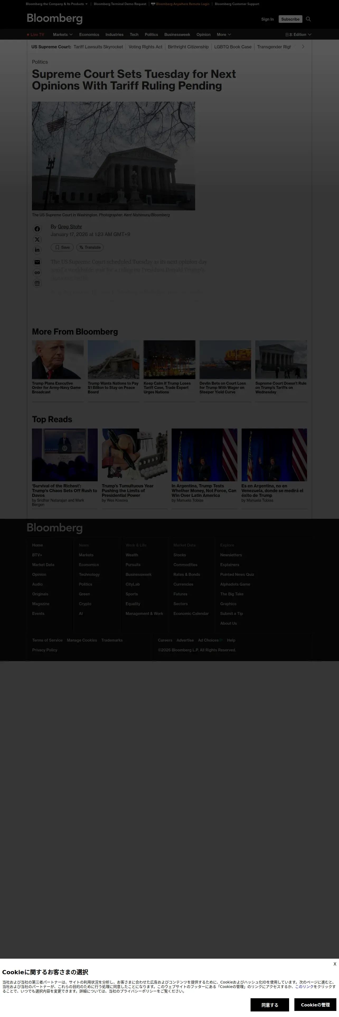 https://www.bloomberg.com:443/news/articles/2026-01-16/supreme-court-to-issue-more-opinions-tuesday-amid-tariff-wait?fbclid=IwdGRjcAPadydleHRuA2FlbQIxMQBzcnRjBmFwcF9pZAwzNTA2ODU1MzE3MjgAAR5JwIQk9DbA5DxT1ixJ3oKjHUD5Mfs_a2VywOATAvFYldrjq14DiBS_xz9V3A_aem_AjAbSvp8CO64c8bdExDaLQ