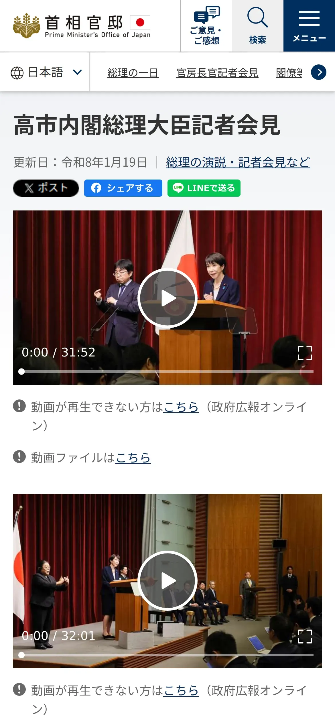 https://www.kantei.go.jp:443/jp/104/statement/2026/0119kaiken.html