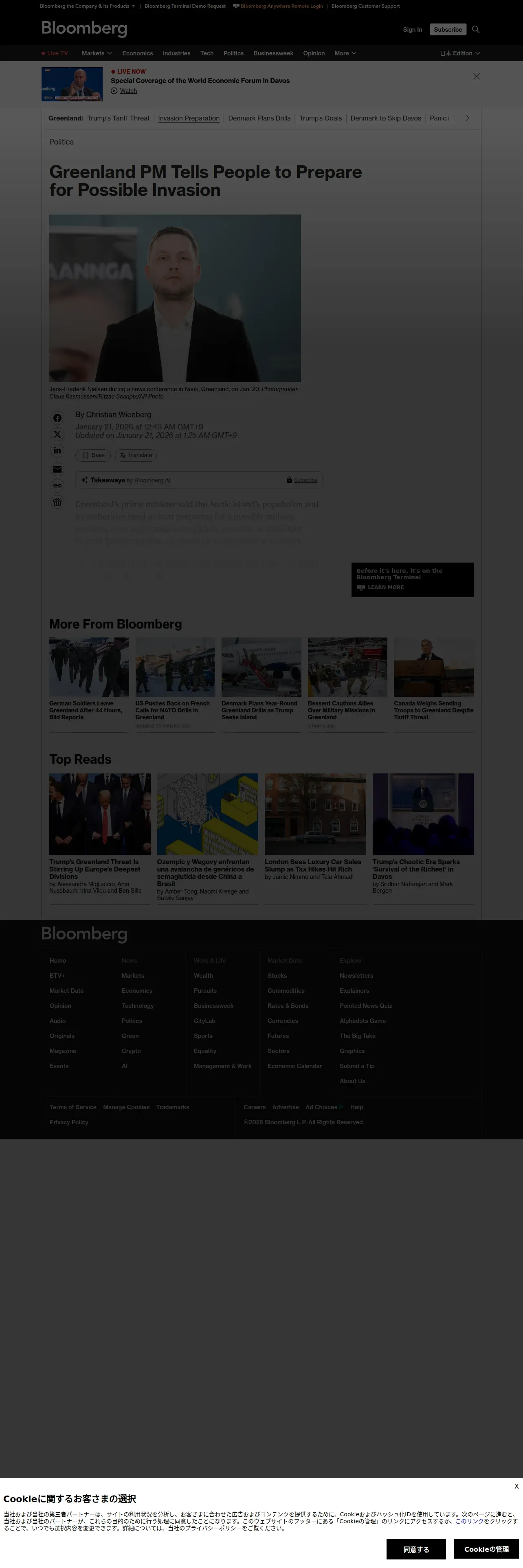 取得元URL: https://www.bloomberg.com:443/news/articles/2026-01-20/greenland-leader-tells-people-to-prepare-for-possible-invasion?leadSource=reddit_wall
