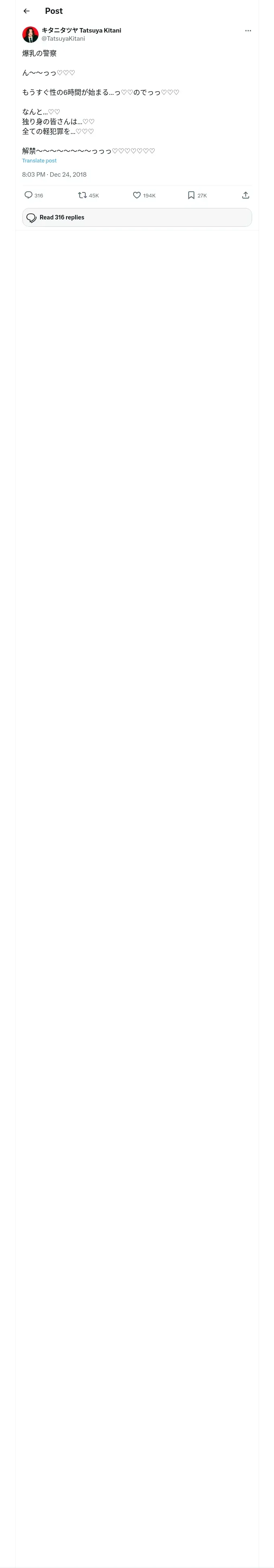 https://x.com:443/TatsuyaKitani/status/1077157764831404032