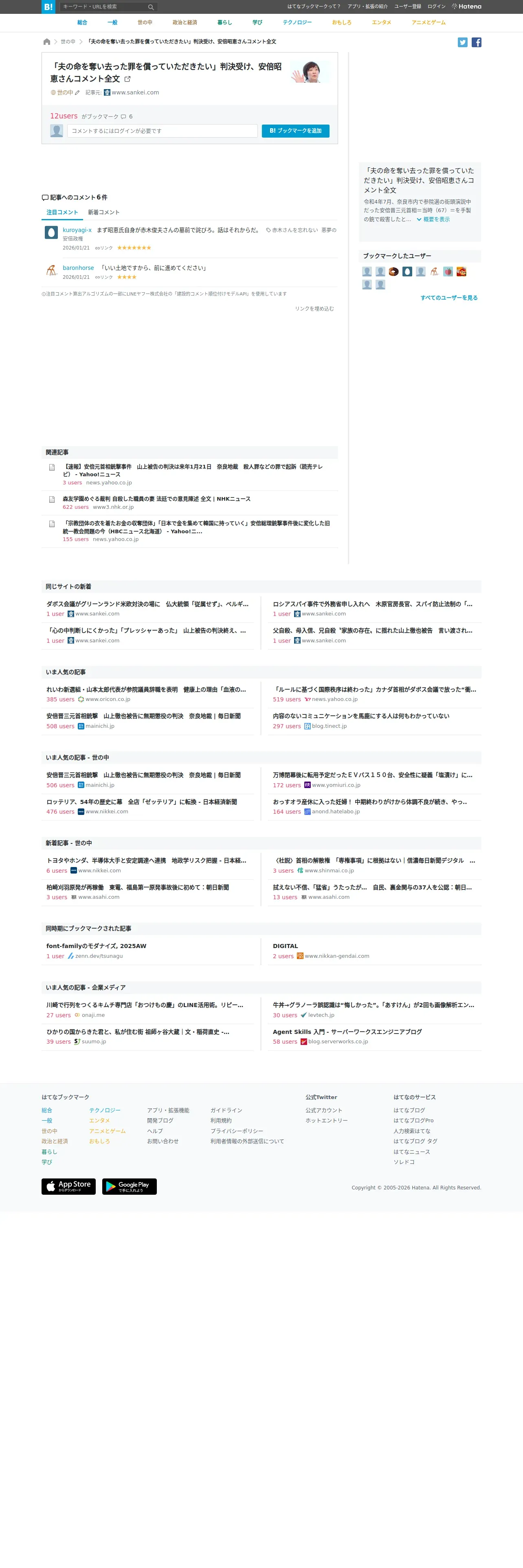 https://b.hatena.ne.jp:443/entry/s/www.sankei.com/article/20260121-5LANQ4DMDRJX7BIR2XBXRIVQWQ/