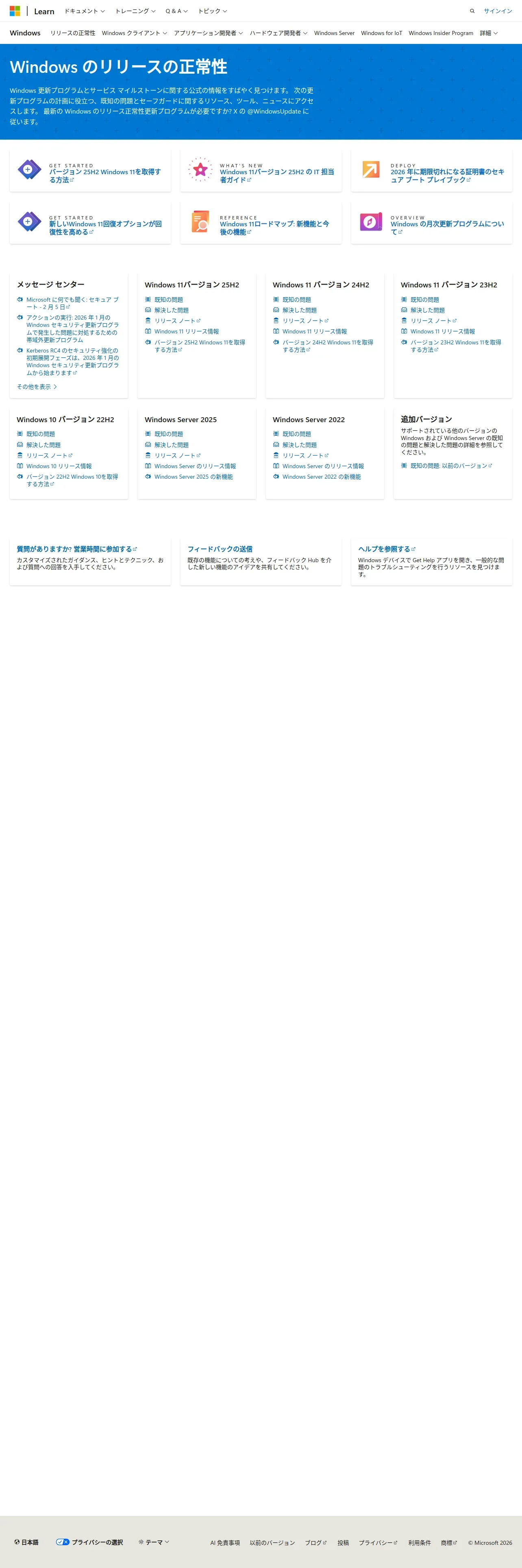https://learn.microsoft.com:443/ja-jp/windows/release-health/