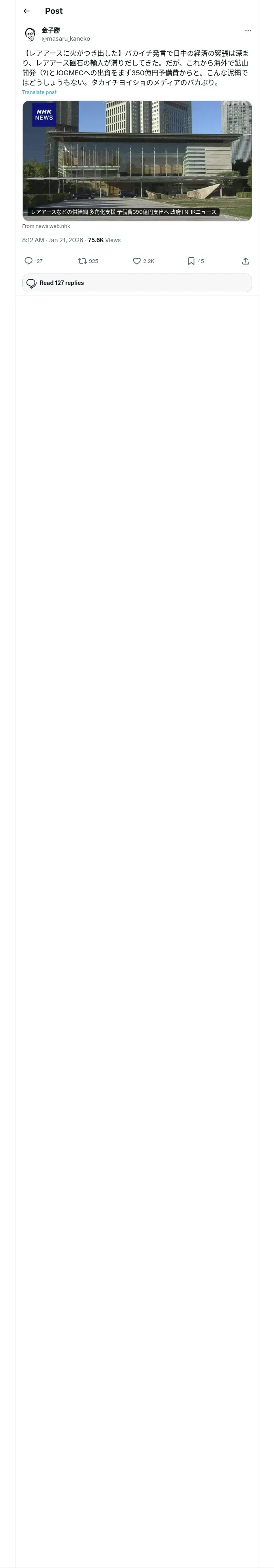取得元URL: https://x.com:443/masaru_kaneko/status/2013751597319196714