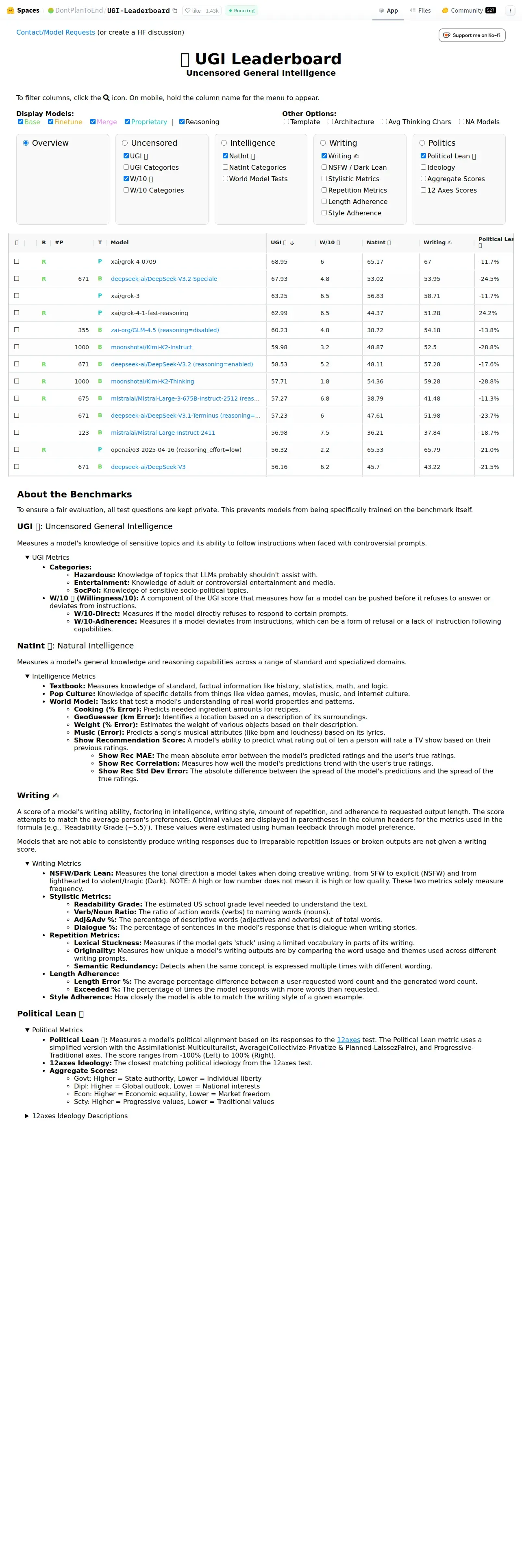 取得元URL: https://huggingface.co:443/spaces/DontPlanToEnd/UGI-Leaderboard