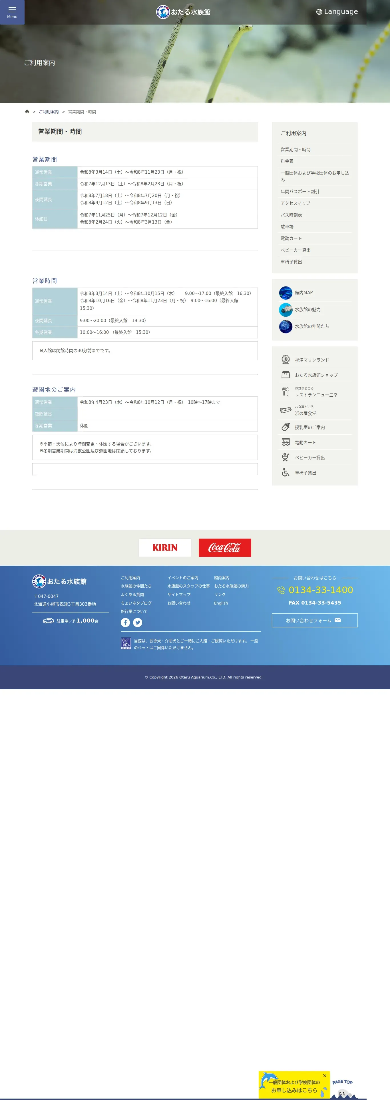 https://otaru-aq.jp:443/guide/openningtime
