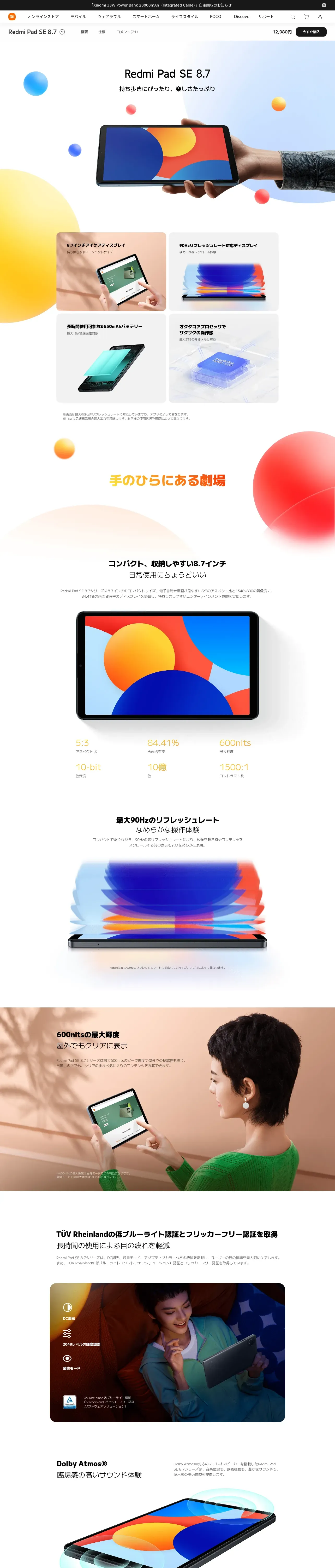 取得元URL: https://www.mi.com:443/jp/product/redmi-pad-se-8-7-inch/