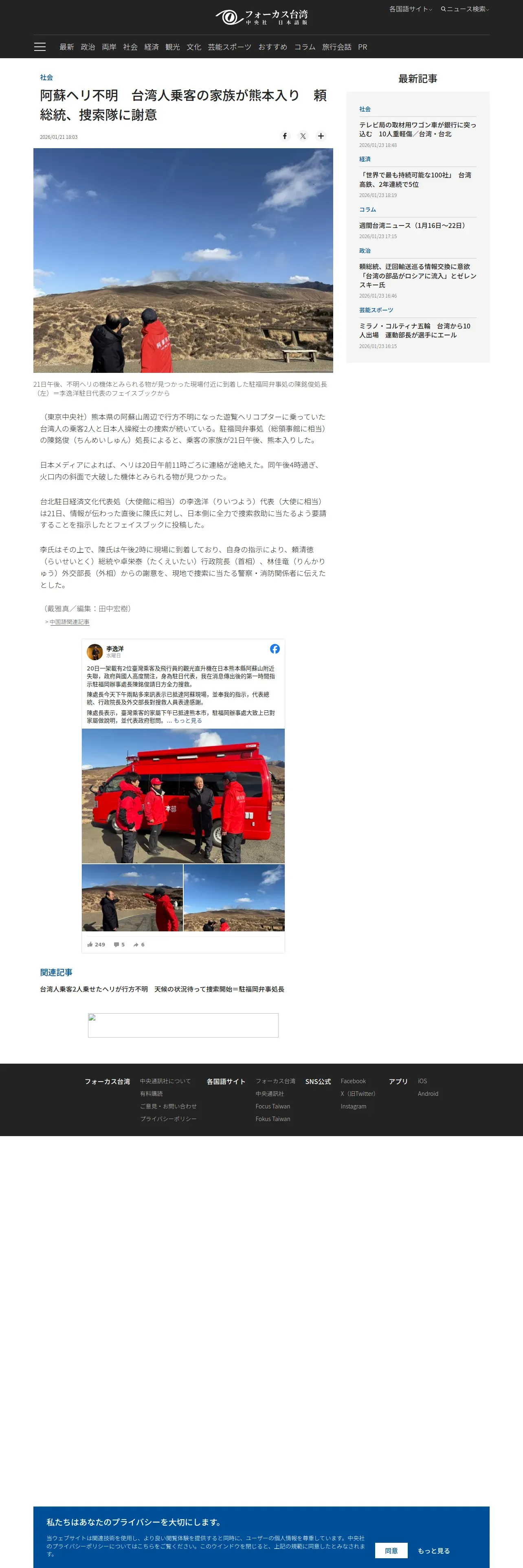 https://japan.focustaiwan.tw:443/society/202601210007