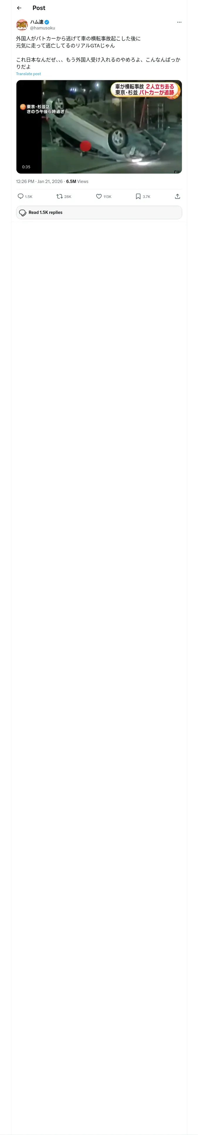 取得元URL: https://x.com:443/hamusoku/status/2013815342984757496