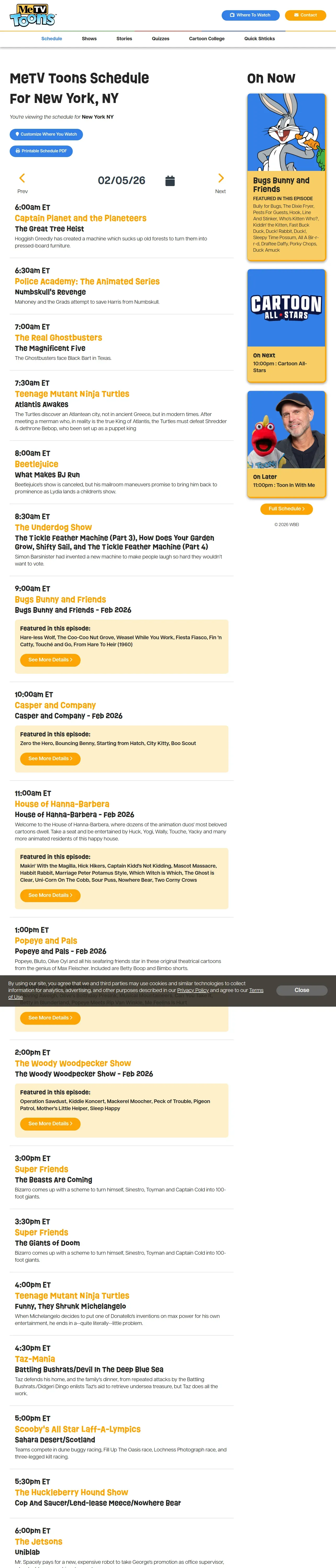 取得元URL: https://www.metvtoons.com:443/schedule/2026-02-05