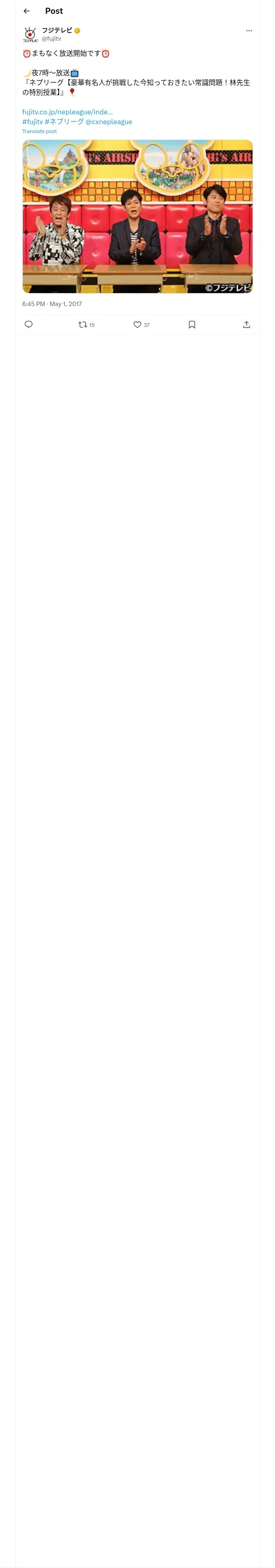 https://x.com:443/fujitv/status/858980575457157120