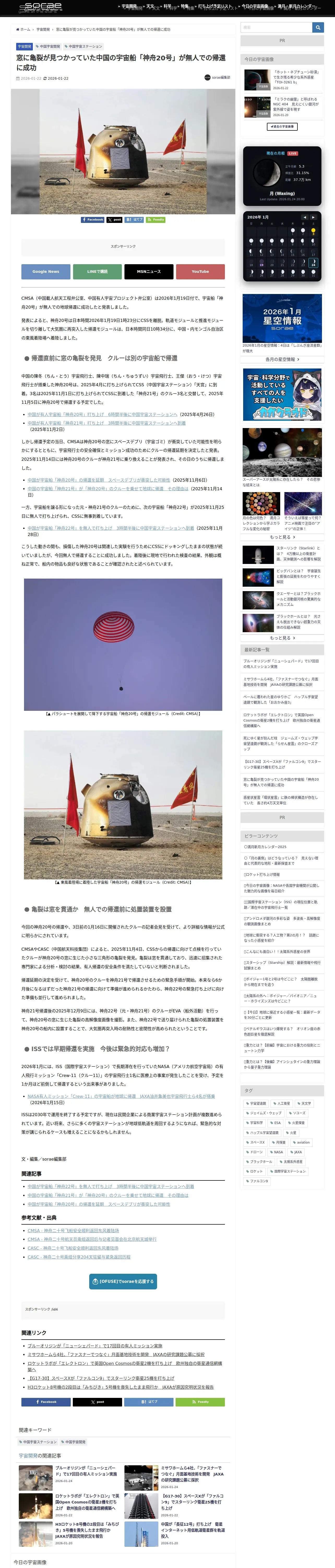 https://sorae.info:443/space/20260122-shenzhou-20.html