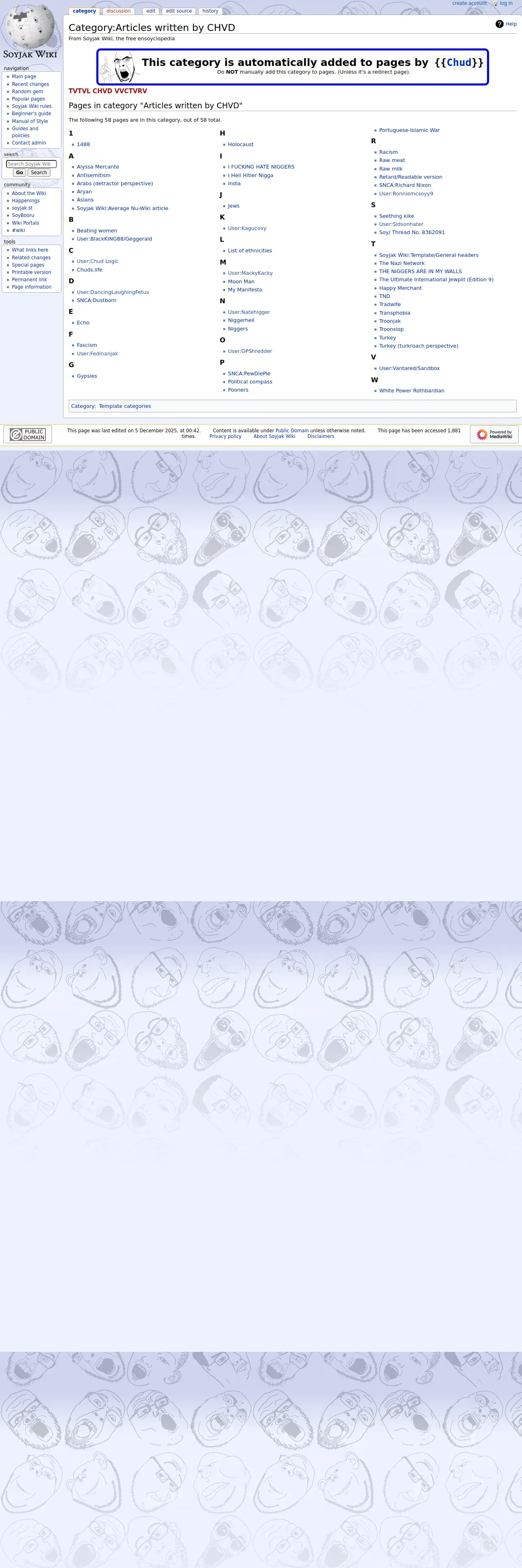 https://soyjakwiki.org:443/Category:Articles_written_by_CHVD