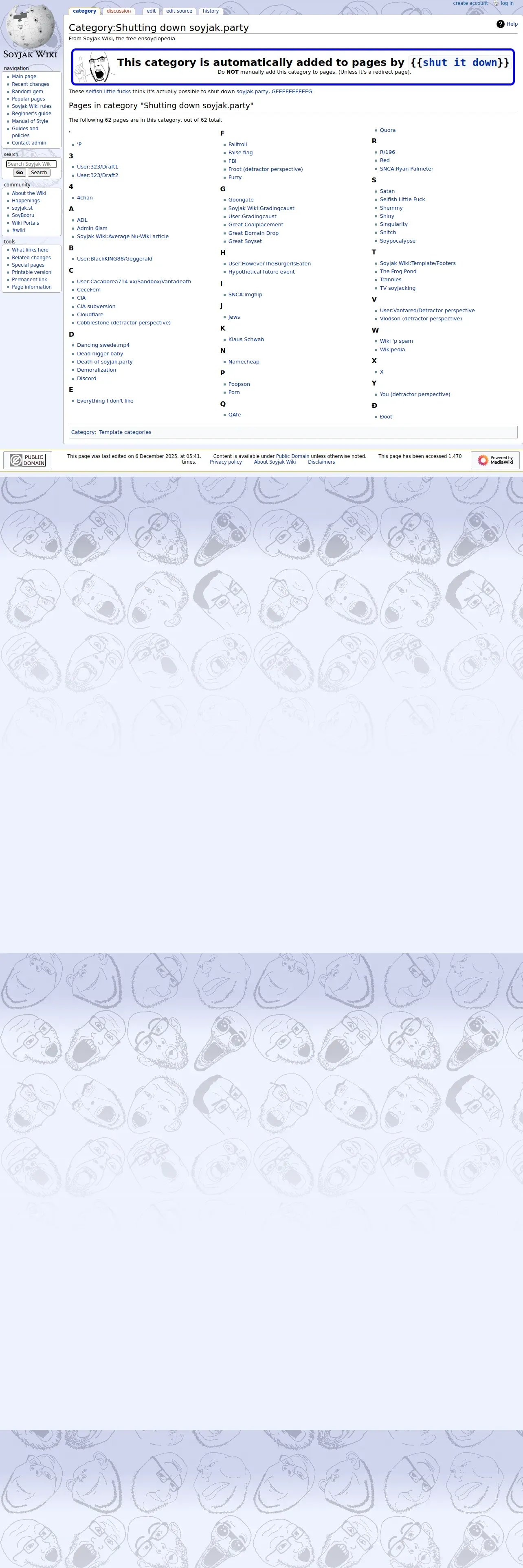 https://soyjakwiki.org:443/Category:Shutting_down_soyjak.party