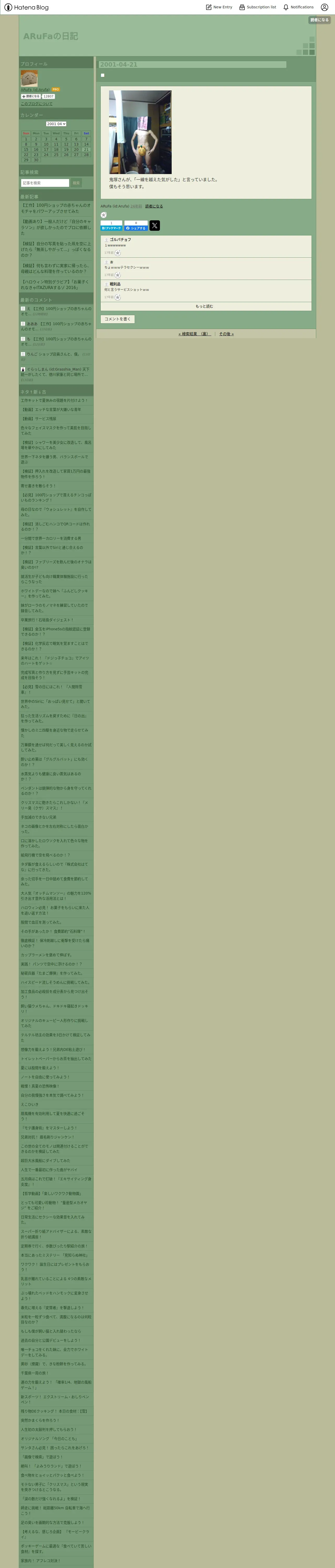 https://arufa.hatenablog.jp:443/entry/20010421