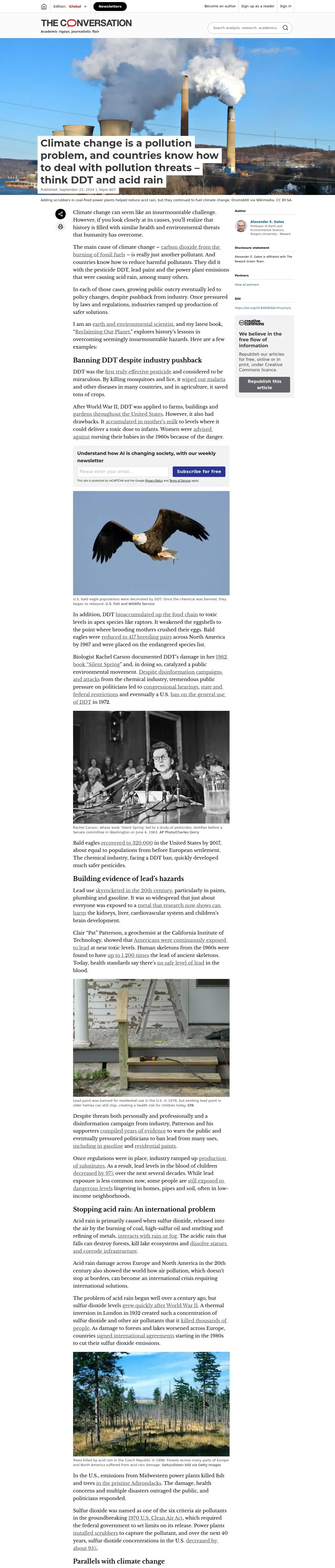 https://theconversation.com:443/climate-change-is-a-pollution-problem-and-countries-know-how-to-deal-with-pollution-threats-think-ddt-and-acid-rain-236479